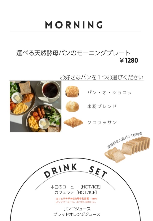 | 営業時間 | 9:00-21:00(20:30LO) morning : 9:00-11:00 lunch : 11:00-14:00 |
